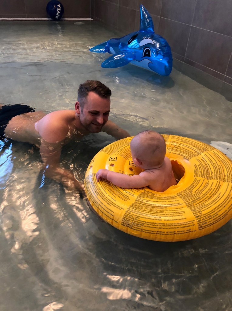 - Handtuch, Waschlappen, Badehose, Schwimmwindeln, Bademantel, Schwimmring, Duschzeug & Creme (wg. dem Chlor)